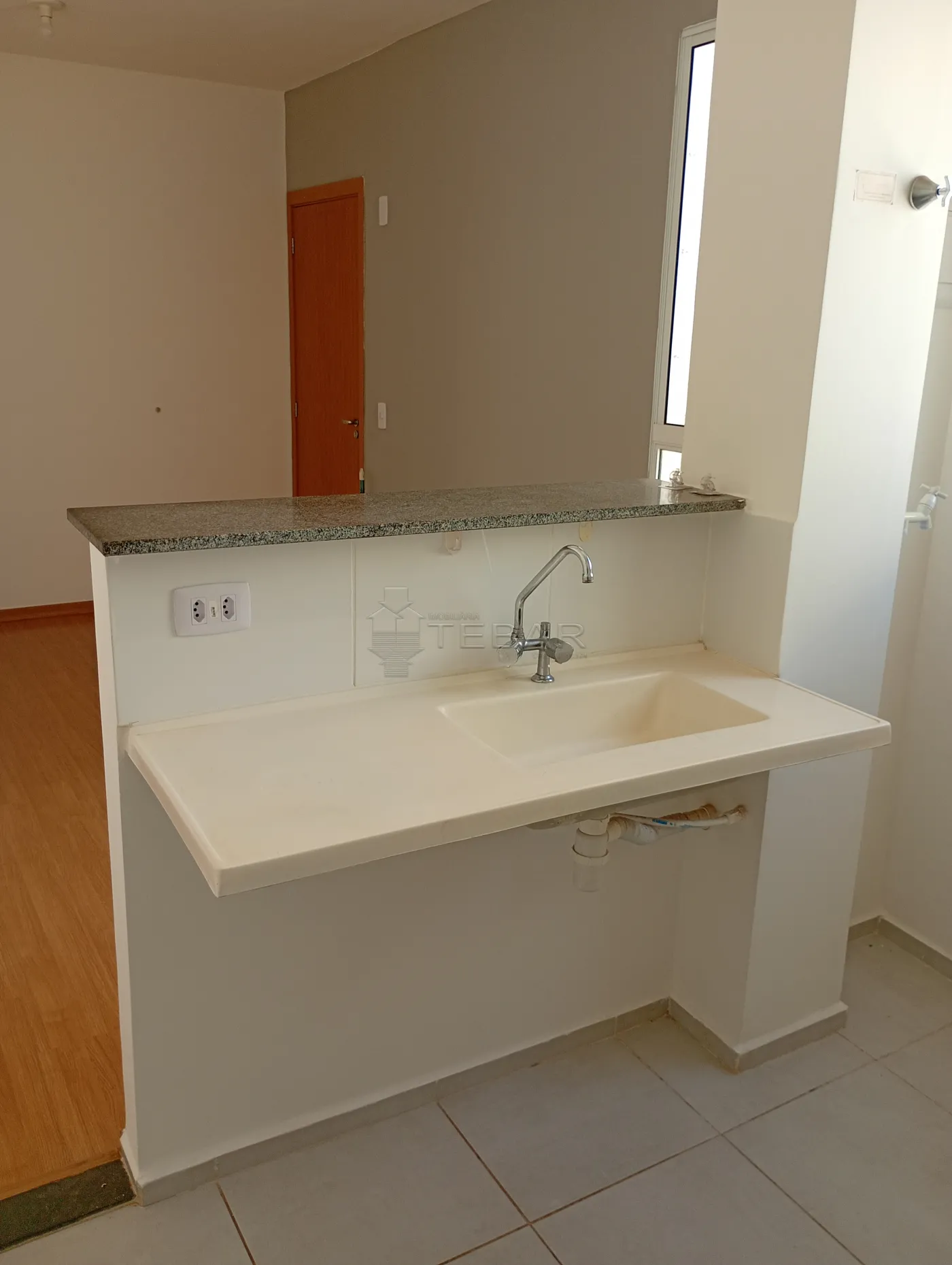 02 dormitórios, sala, cozinha, área de serviço, banheiro social, garagem coberta, piso laminado e cerâmica.