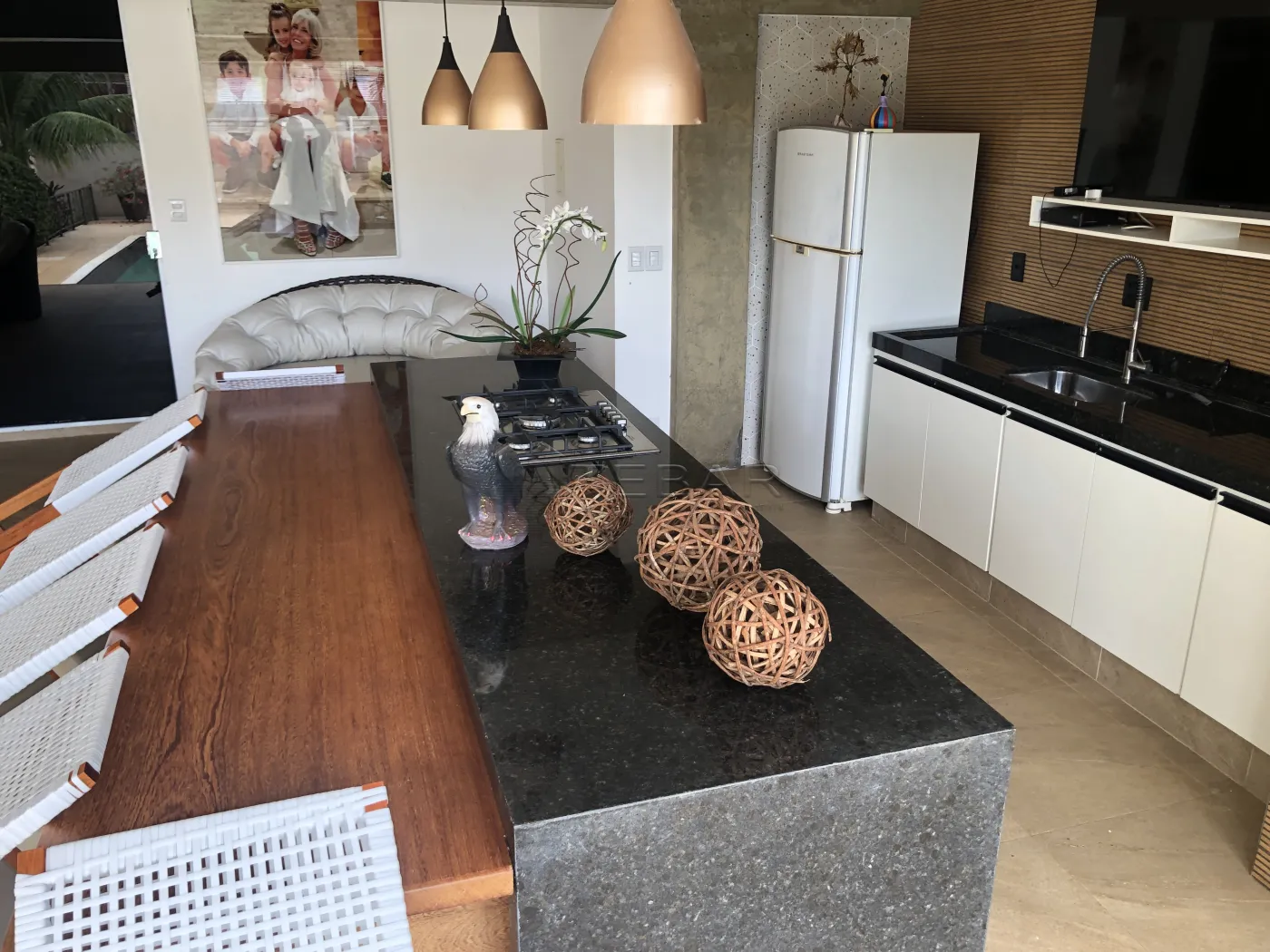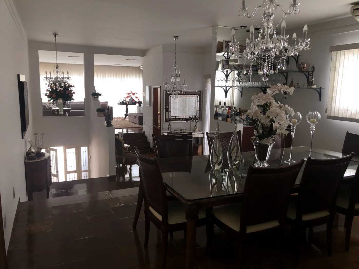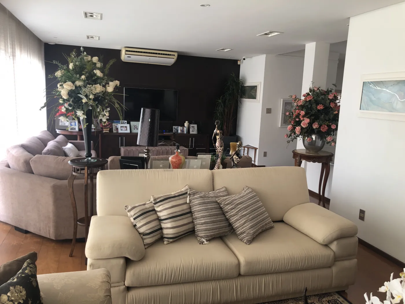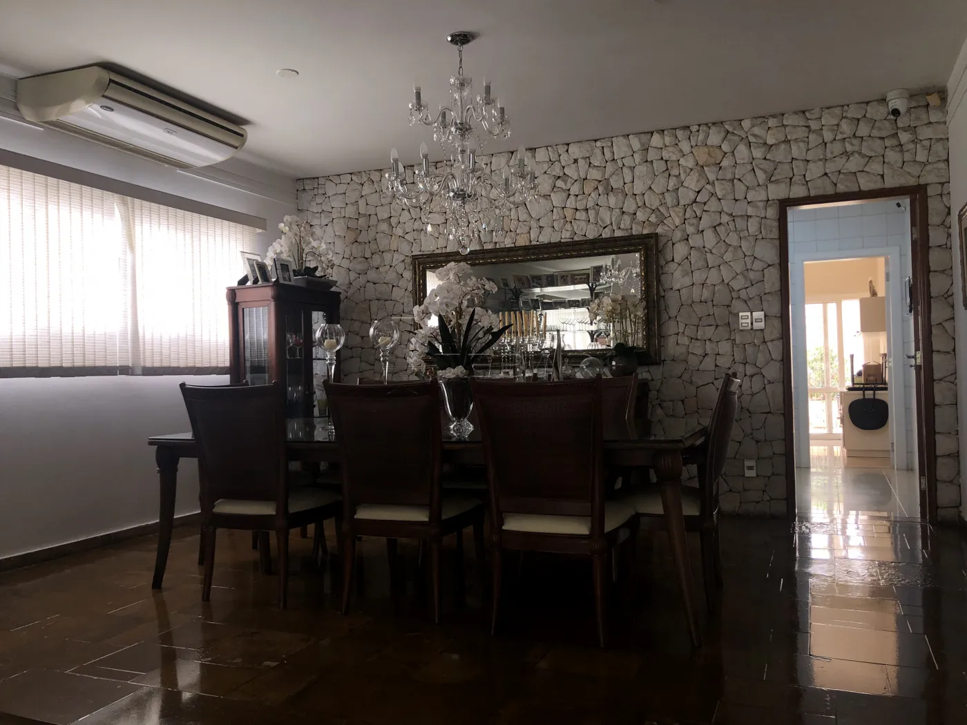 Casa ampla com 3 dormitórios com ar-condicionado e closet, sendo 2 suítes. Um dos quartos conta com escritório com armário embutido. Possui lavabo, três salas conjugadas (uma para dois ambientes com dois ar-condicionados) e cozinha planejada.
